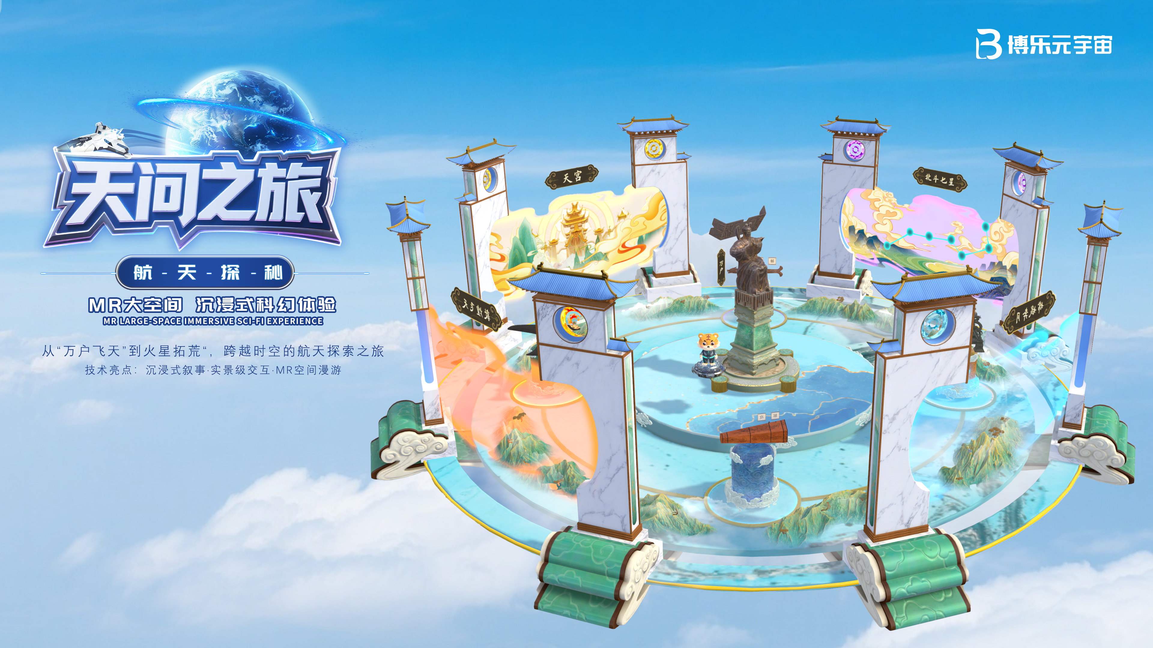 博乐信息用MR技术,让你能穿越600年,从万户飞天到火星登陆,亲历这部波澜壮阔的航天史诗。这就是博乐信息即将推出《天问之旅·航天探秘》MR大空间产品,用最前沿的MR混合现实技术让每个中国人都能参与这份航天梦想。