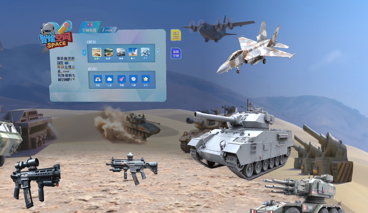 利用MR混合现实教室,开展“党史中的战役”“新时代强军思想”等融合课程,学员可通过手势操作调取3D装备模型、沙盘推演等。